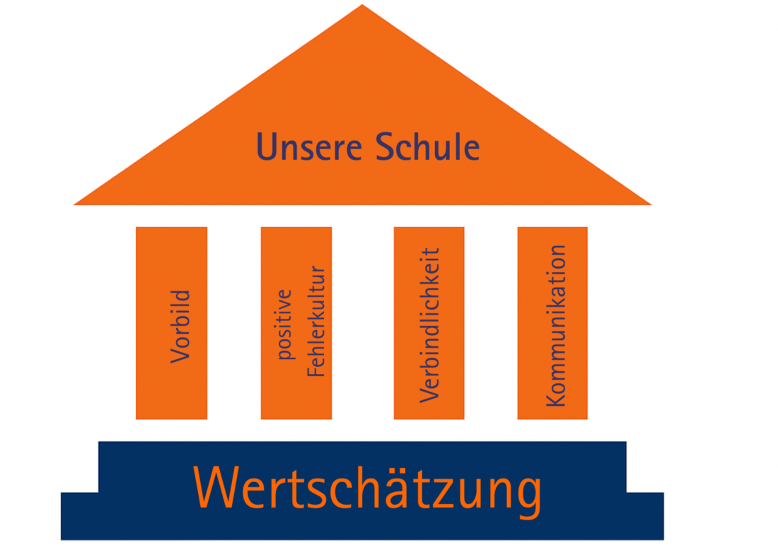 Diese Haltung prägt unseren schulischen Alltag sowohl im Unterricht, in der Zusammenarbeit im Kollegium als auch im Umgang miteinander. Grundlage all unseres Handelns ist gegenseitige Wertschätzung. Auf diesem Fundament ruhen unsere Leitlinien, die wir als Schulgemeinschaft 2024 erarbeitet haben, sukzessive ins Schulleben integriert werden und die unsere Führungskultur, unsere Zusammenarbeit und unser Miteinander bestimmen. Sie geben Orientierung, schaffen Sicherheit und ermöglichen eine Schule, in der Lernen angstfrei, wertschätzend und verbindlich gelingen kann.