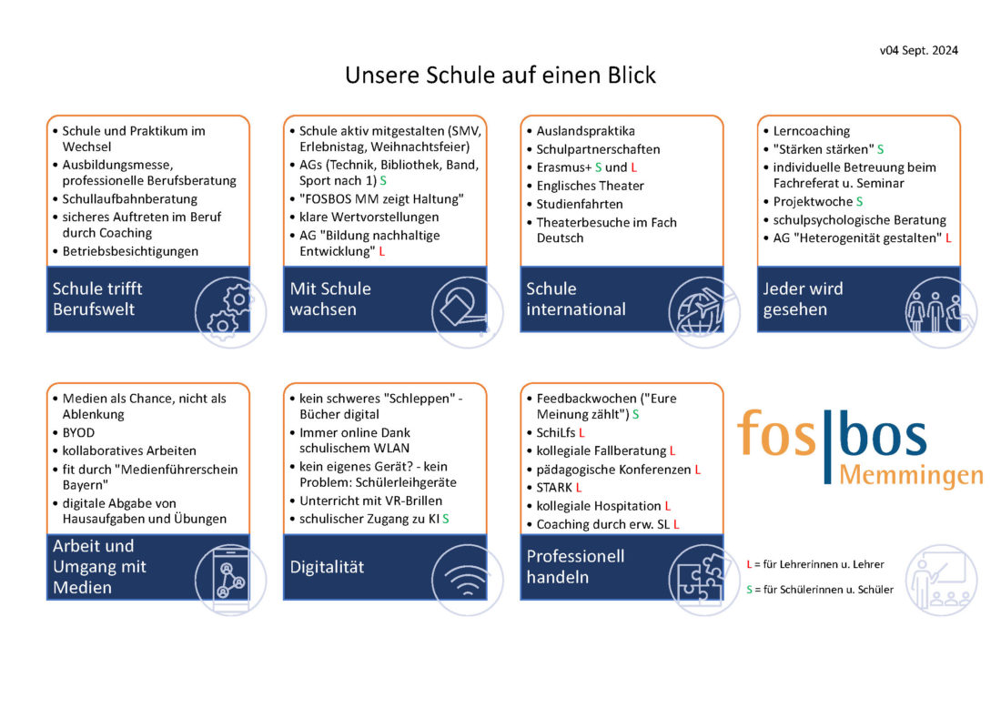 Das ganzheitliche Qualitätsmanagementsystem „QmbS“ hat zum Ziel, die komplexe und verantwortungsvolle Arbeit beruflicher Schulen in Bayern zu systematisieren und zu professionalisieren. Es steht in enger Verbindung zum neuen bayrischen Qualitätstableau und wirkt mit der externen Evaluation hin zu einem ganzheitlichen Schulentwicklungsprozess.
